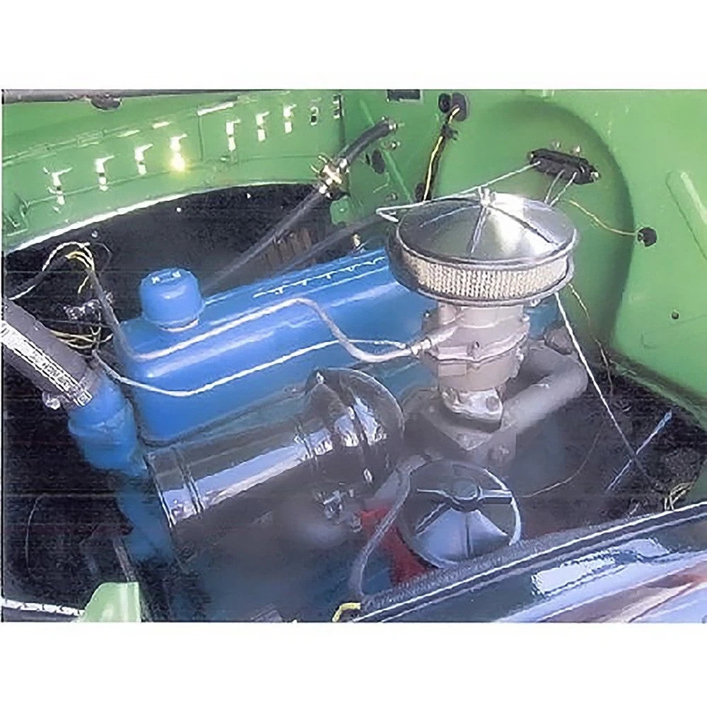 Late 1955-1959 with exact original style black top. Created to fit the original Rochester Zenith and Carter YF carburetor not the early Carter W1 cast iron style. Includes modern non copper air filter.