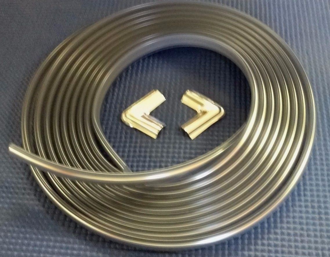 BRAND NEW CHROME RUBBER LOCK STRIP FOR REAR WINDOW RUBBER SEAL COMES WITH BOTH HI POLISHED METAL MITERED CORNERS. THIS PART IS MADE BY PRECISION. GREAT QUALITY LIFETIME WARRANTY