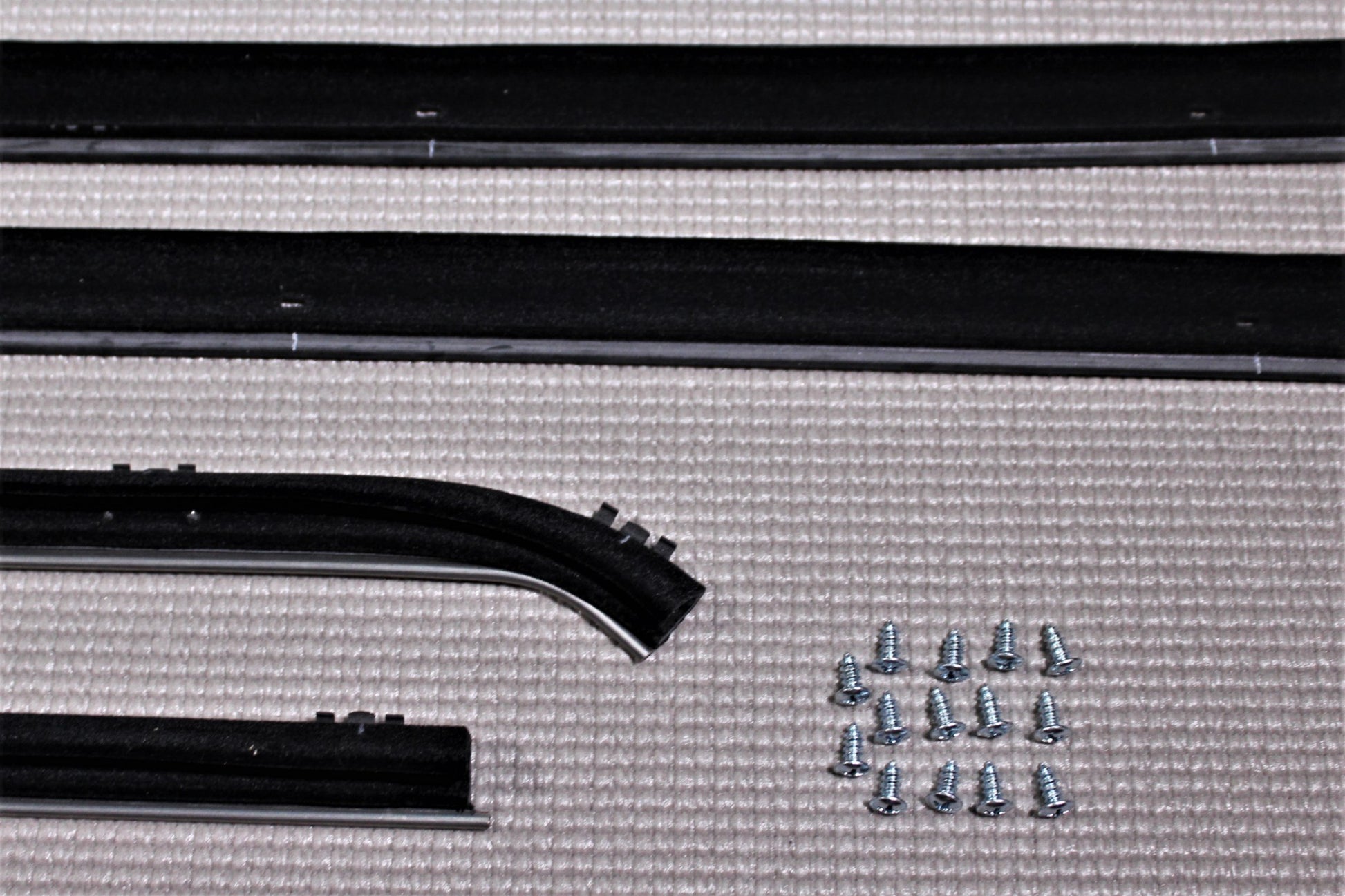 These Are Placed On THE OUTSIDE Of The Door To Support Glass As It Rolls Up And Down AND SEALS DOOR GLASS AND REAR QUARTER WINDOW GLASS. COMES WITH CLIPS INSTALLED AND SCREWS
