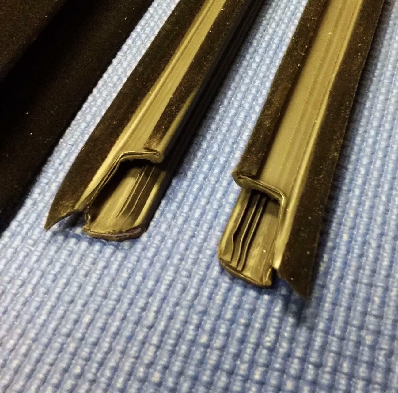 DOOR WINDOW FELTS RUBBER SEALS FOR BOTH FRONT DOORS 4 PIECES FITS ON THE DOOR AND INTERIOR DOOR PANEL, SEALS THE DOOR GLASS AS IT GOES UP AND DOWN, THESE ARE A FACTORY REPLACEMENT AND CLIP INTO PLACE.