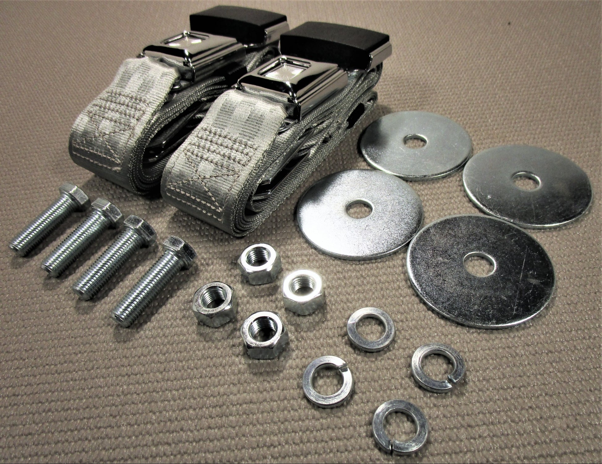 CHEVROLET FORD DODGE HOT ROD MUSCLE CAR CHROME OE STYLE GREY SEAT BELTS 2 SETS
