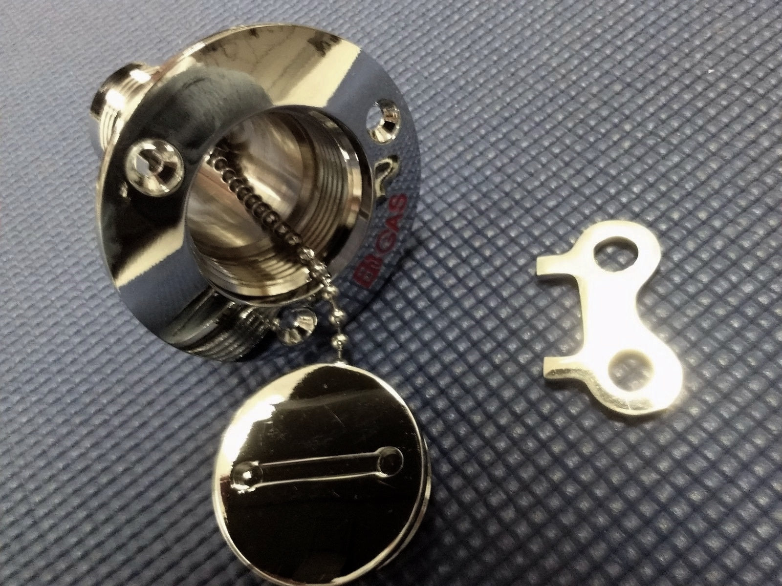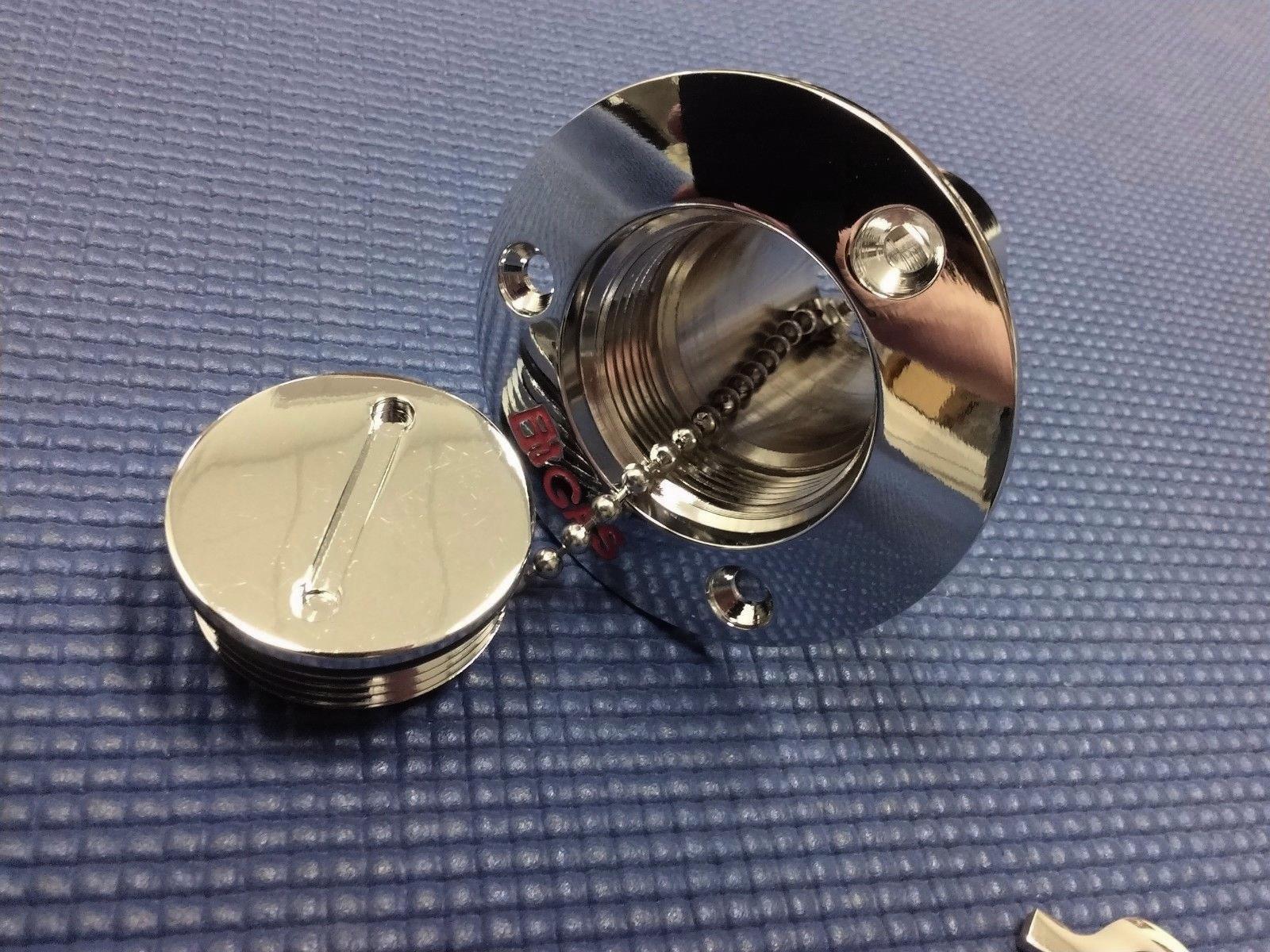 THIS IS CHROMED STAINLESS PART, COMES WITH A KEY TO LOCK THE CAP