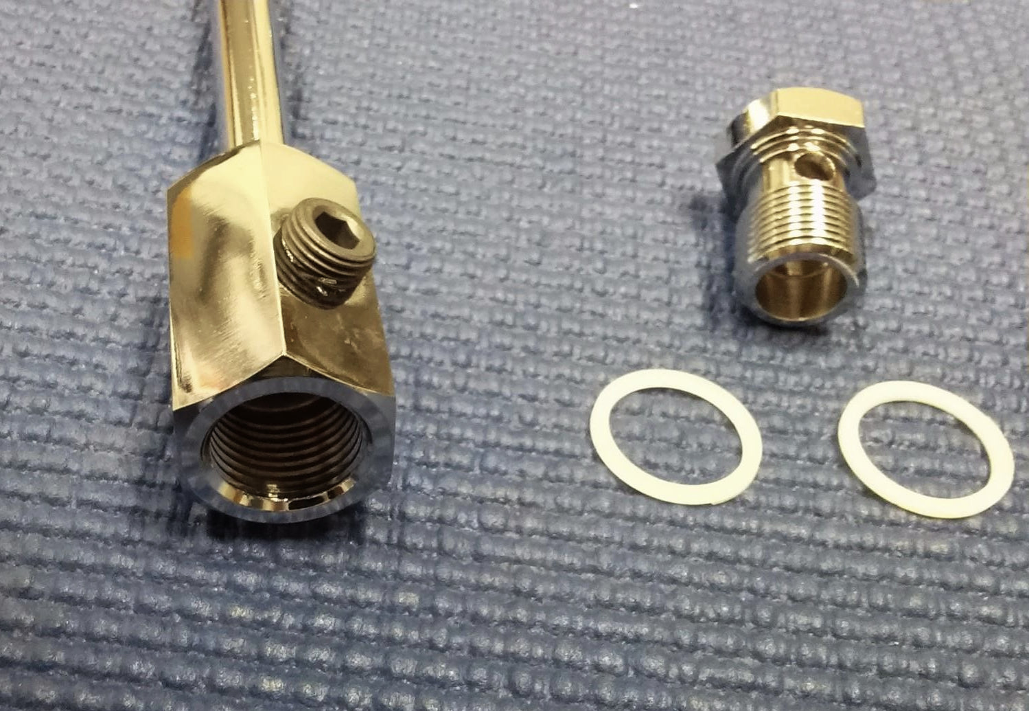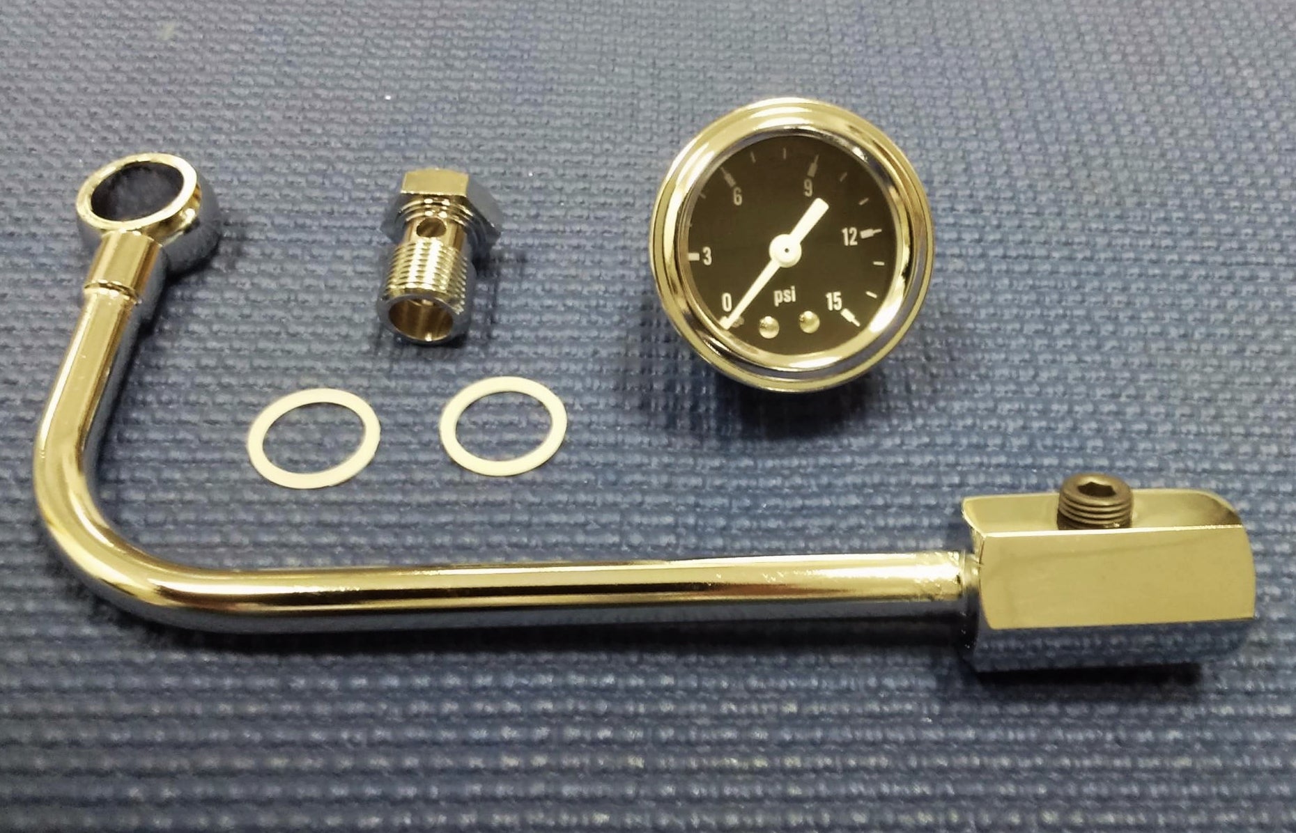 CHROME STEEL INLET FUEL LINE WITH FUEL PRESSURE GAUGE FOR EDELBROCK AND CARTER CARBURETORS, COMES WITH FITTING AND GASKETS TO CARBURETOR, HAS 3/8 NPT FEMALE LINE INLET SO YOU CAN EASILY ADAPT FOR STEEL BRAIDED OR RUBBER FUEL LINE DEPENDING WHAT YOU ARE USING FOR YOUR PROJECT.